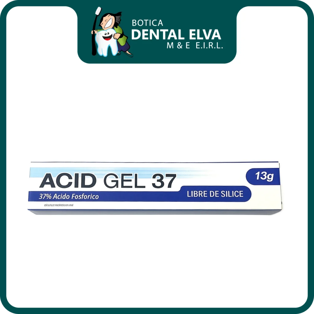 Acid Gel 37 es un gel grabador dental a base de ácido fosfórico al 37%, diseñado para preparar superficies de esmalte y dentina en procedimientos adhesivos. Su consistencia tixotrópica evita el escurrimiento, facilitando una aplicación precisa incluso en áreas difíciles. Libre de sílice, lo que permite un lavado más rápido y elimina residuos que puedan interferir con la adhesión.