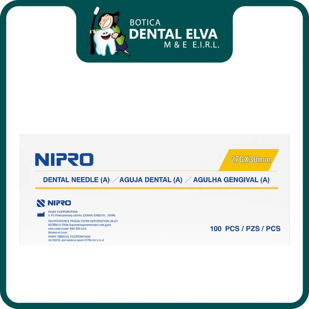 • 100 unidades de Aguja Dental Nipro 27G x 30mm