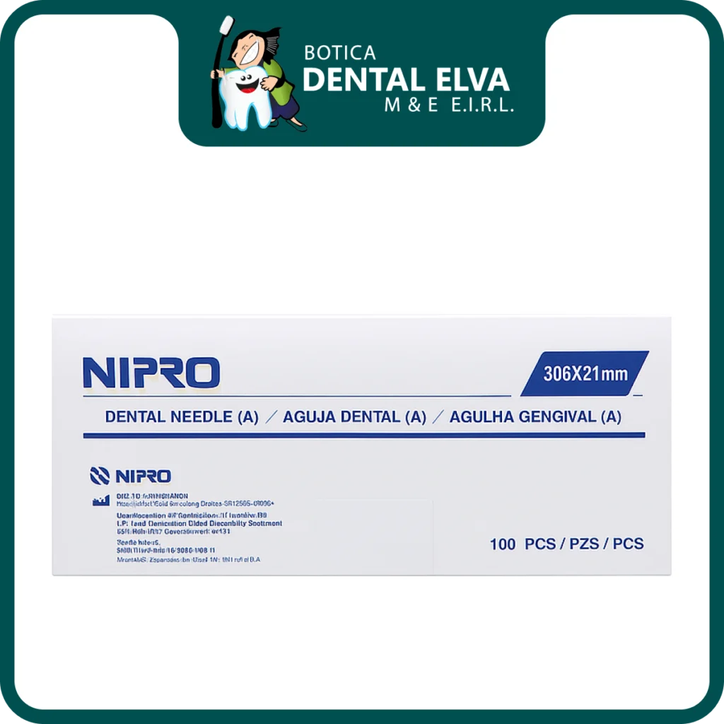 La Aguja Dental Nipro 30G x 21 mm es una aguja hipodérmica estéril diseñada para procedimientos anestésicos en odontología. Fabricada con acero inoxidable de grado médico y bisel de triple afilado, permite una inserción suave y precisa, reduciendo molestias para el paciente. Su diseño ofrece rigidez óptima, excelente control durante la aplicación y total compatibilidad con jeringas carpules estándar.