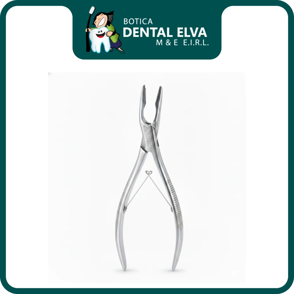Su diseño cuenta con puntas activas en forma de cucharilla con bordes afilados que permiten «morder» y retirar fragmentos de hueso o espículas con facilidad. Incorpora un mecanismo de resorte (fleje) entre los mangos que mantiene el instrumento abierto en reposo, facilitando la maniobra repetitiva durante la alveoloplastia sin fatiga manual para el cirujano.