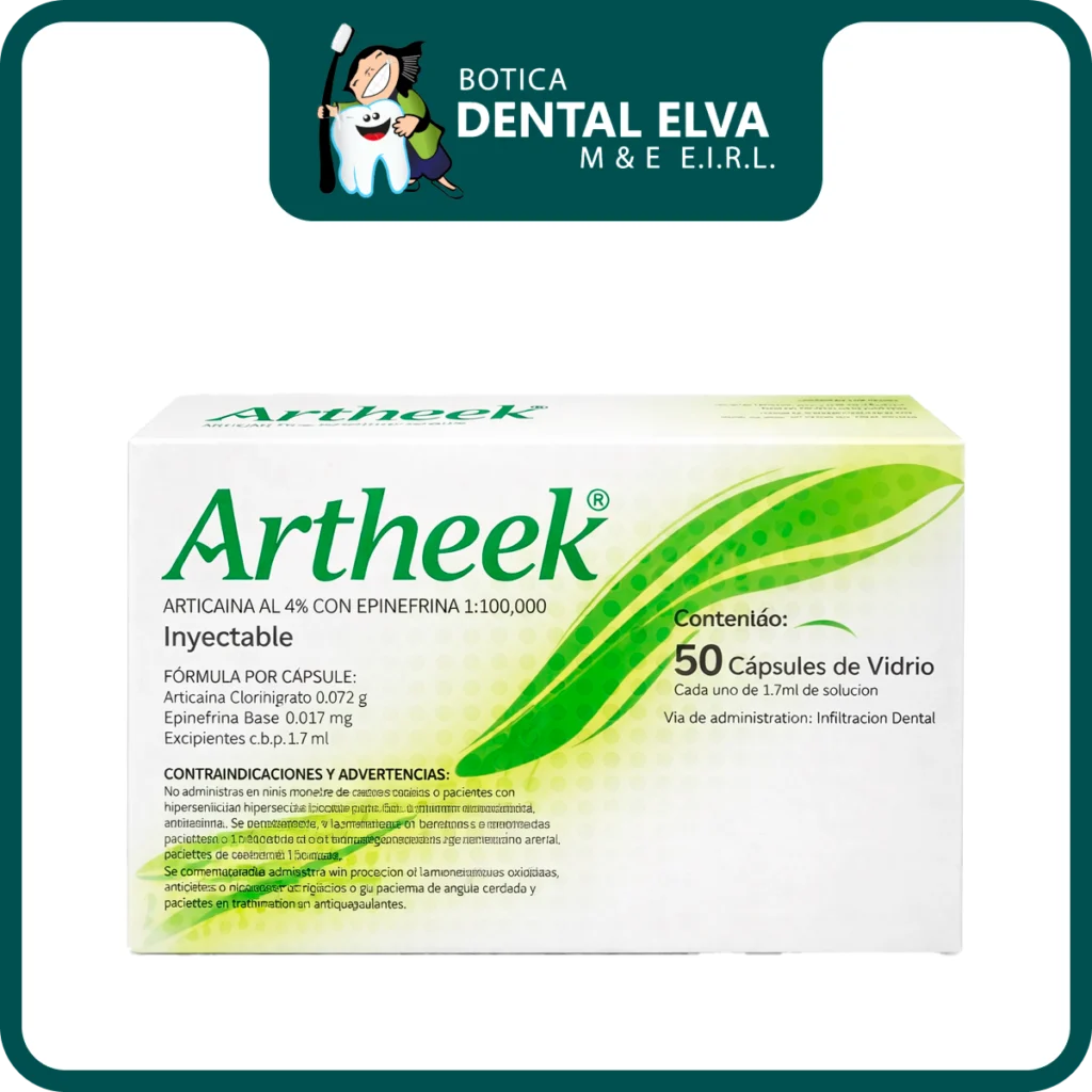 Artheek 4% es un anestésico local para odontología que combina articaína al 4% con epinefrina 1:100.000, diseñado para lograr anestesia local efectiva durante procedimientos dentales. La articaína (tipo amida) proporciona el efecto anestésico, mientras que la epinefrina actúa como vasoconstrictor, ayudando a reducir la absorción sistémica del anestésico y favoreciendo un campo operatorio más controlado. Se presenta en carpules para una administración práctica, segura y estandarizada en el entorno clínico.