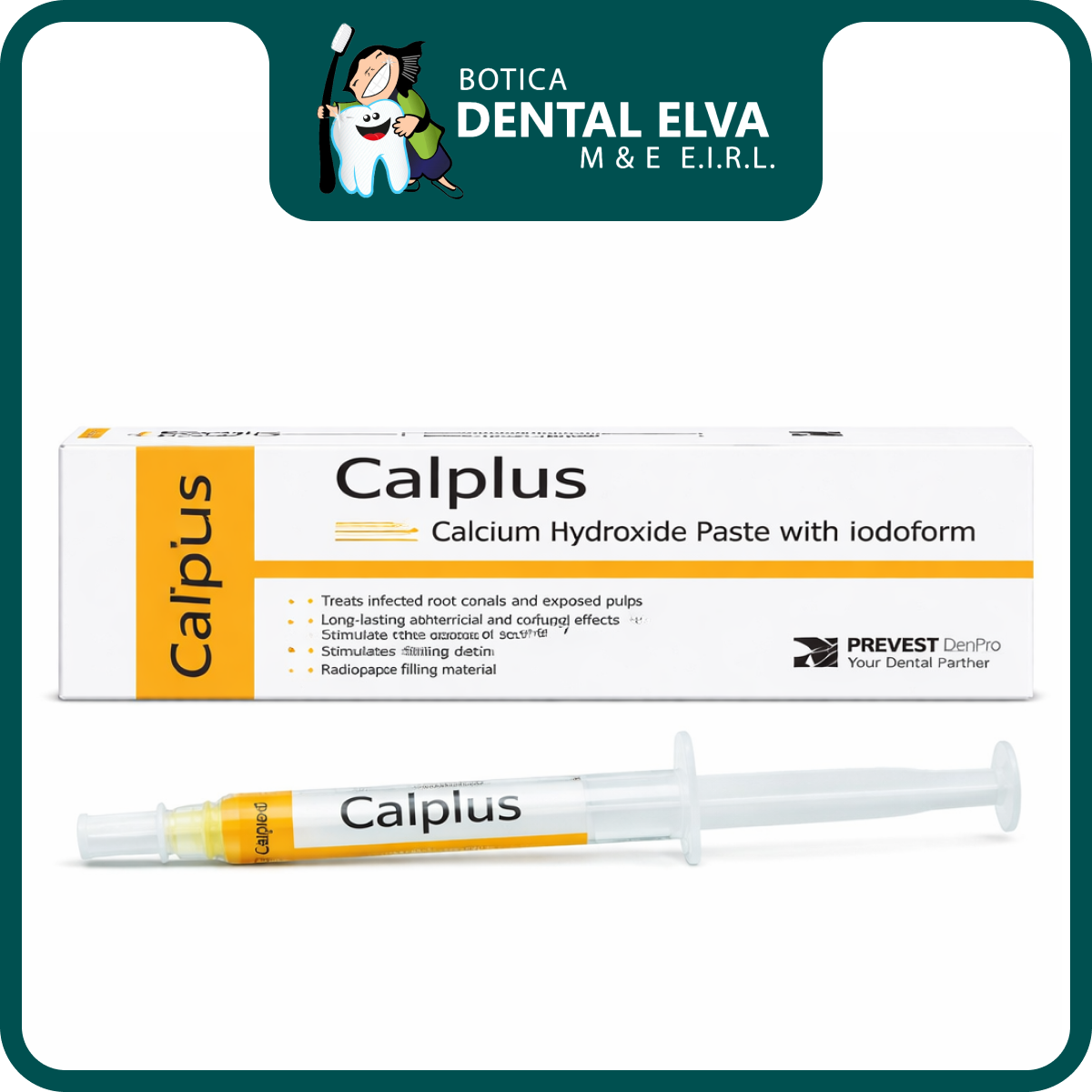 Calplus es una medicación intraconducto formulada con hidróxido de calcio y yodoformo, diseñada para colocarse temporalmente dentro del conducto radicular durante el tratamiento endodóntico. El hidróxido de calcio se caracteriza por su pH elevado, lo que contribuye a crear un ambiente menos favorable para microorganismos, mientras que el yodoformo aporta soporte adicional en la acción antiséptica y mejora la radiopacidad del material.