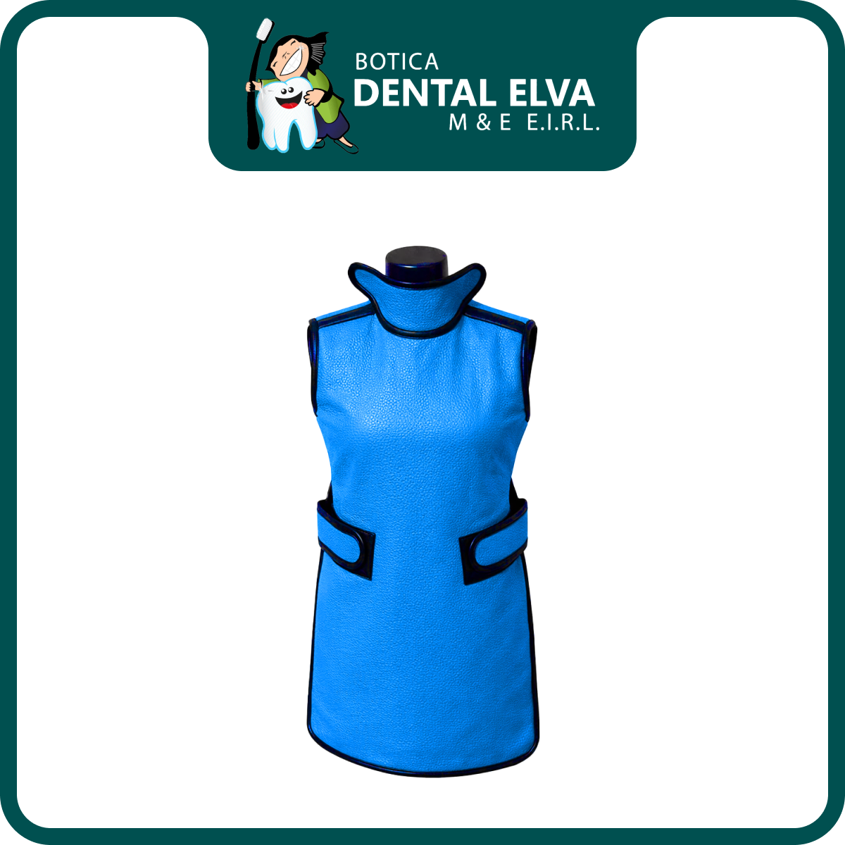 Su formato tipo chaleco o delantal permite colocación rápida y un ajuste cómodo para el usuario. Dependiendo del modelo, puede incluir cuello tiroideo integrado o adicional, reforzando la cobertura en la zona del cuello. Se ofrece en distintos colores y tallas, y su superficie suele ser de fácil limpieza para uso continuo en clínica.