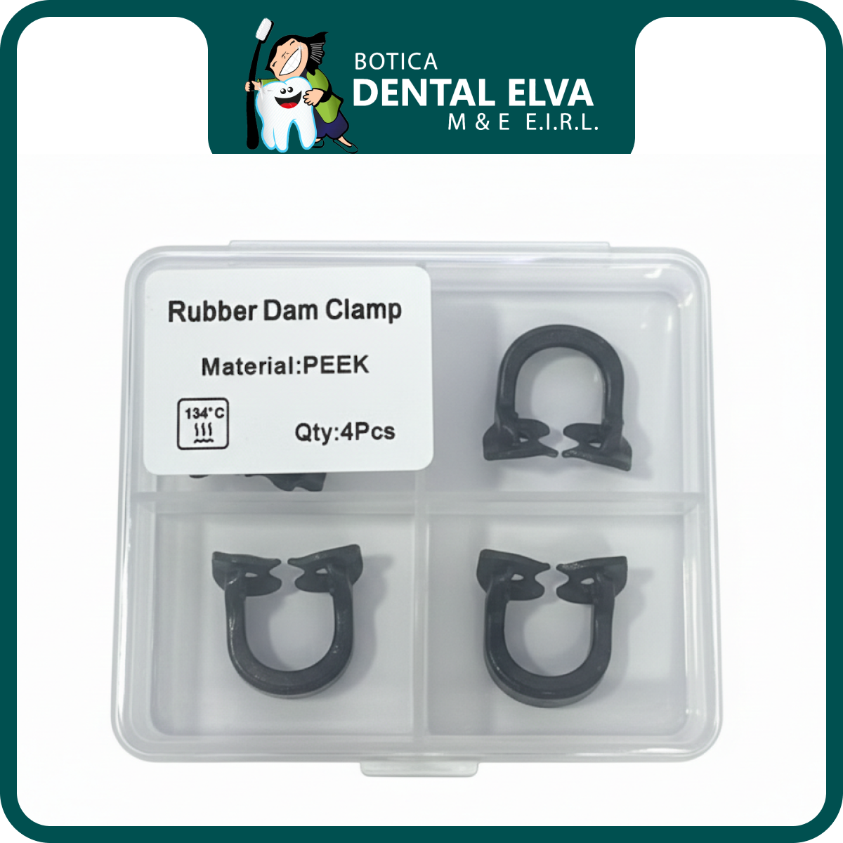 Caja con 4 clamps para dique de goma peek