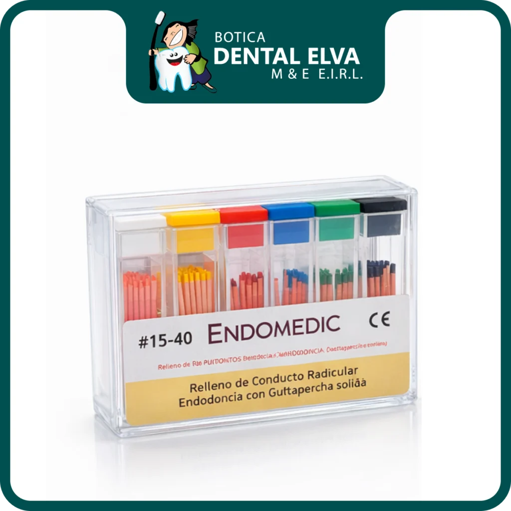 Los Conos de Gutapercha Endomedic son puntas diseñadas para la fase de obturación del tratamiento endodóntico. Proporcionan un sellado eficaz y preciso del conducto radicular gracias a su calibración uniforme y biocompatibilidad. Son ideales para ser utilizados junto con selladores endodónticos, permitiendo un llenado tridimensional seguro y confiable.