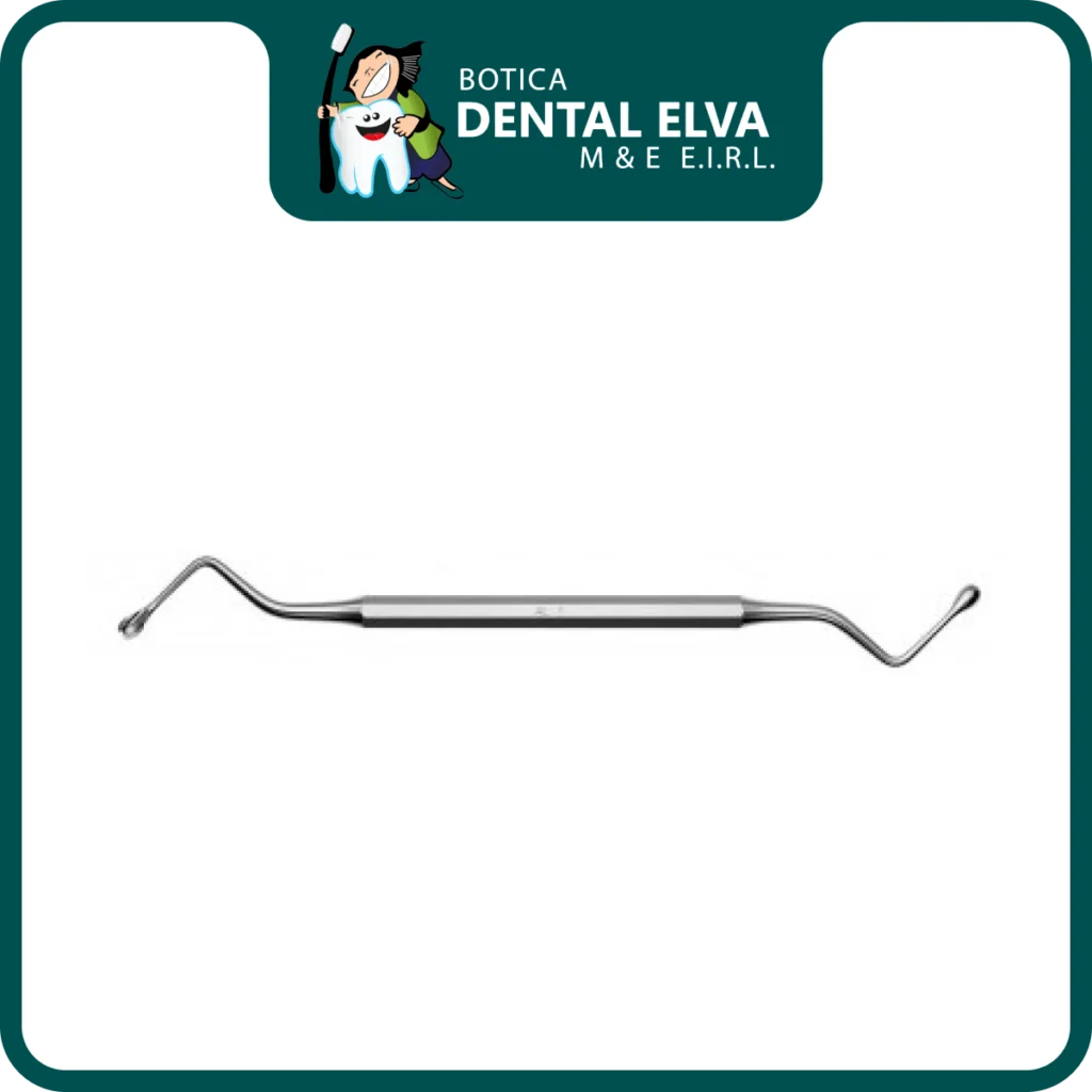 Sus dos partes activas en forma de cucharilla (cucharillas opuestas) poseen bordes cortantes afilados que permiten raspar eficazmente las paredes óseas para eliminar tejido de granulación, restos del saco pericoronario, quistes periapicales o esquirlas de hueso sueltas. Este proceso de desbridamiento es crucial para promover la formación de un coágulo sanguíneo limpio y evitar infecciones secundarias o alveolitis seca.