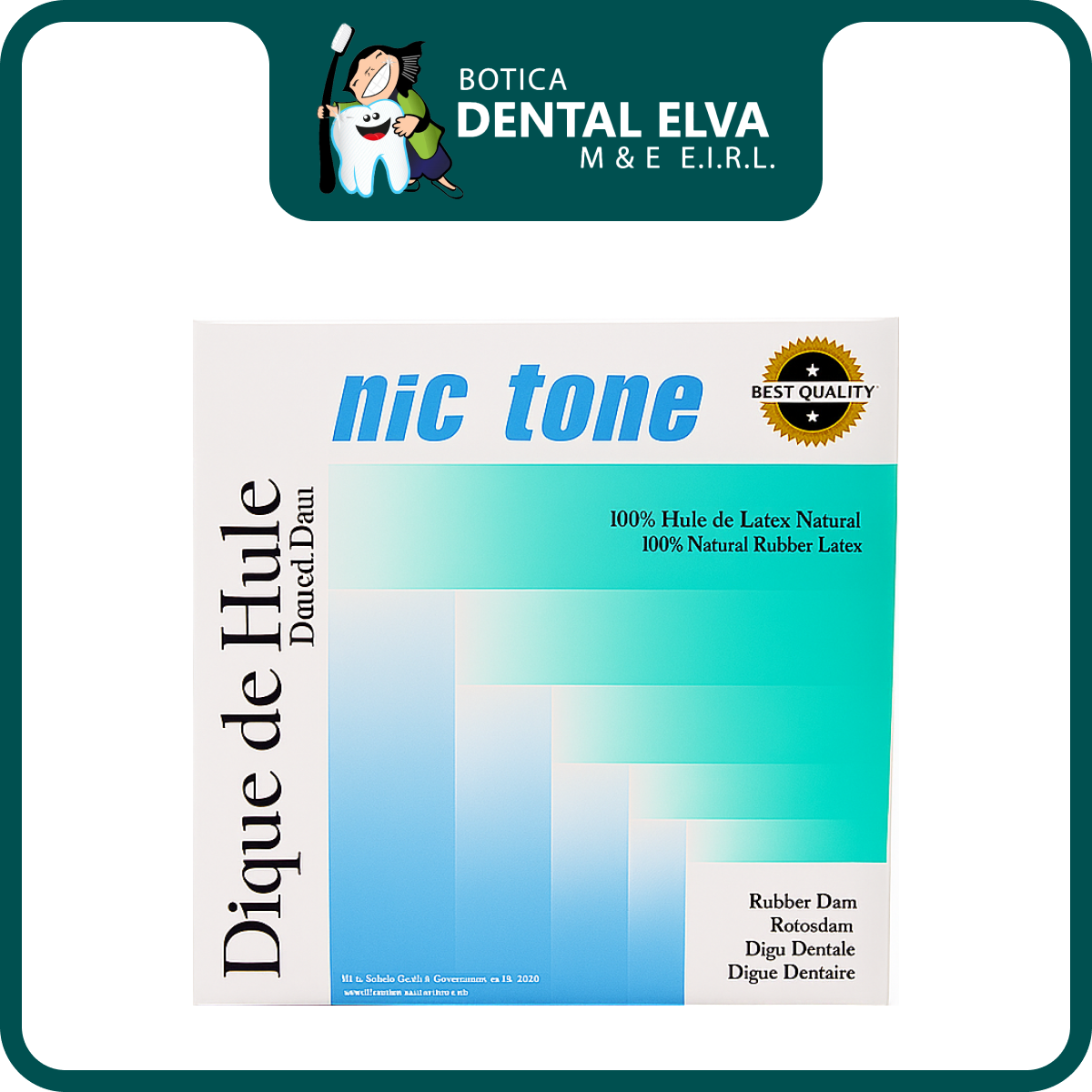 El Dique de Goma 6x6 NicTone está elaborado con látex 100% natural, ofreciendo elasticidad, resistencia y un excelente aislamiento del campo operatorio. Su tamaño de 6x6 pulgadas permite una cobertura amplia y cómoda durante procedimientos restauradores, endodónticos o estéticos.