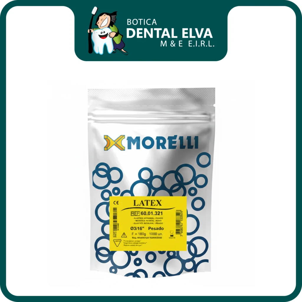 Los Elásticos Intraorales Morelli (Pesados) son componentes auxiliares fabricados con látex natural de grado quirúrgico, diseñados para proporcionar fuerzas de tracción continuas y predecibles entre las arcadas dentarias. Esta línea de fuerza «Pesada» (Heavy) se caracteriza por ejercer una resistencia mayor, indicada para movimientos dentales que requieren un anclaje robusto o correcciones ortopédicas significativas.