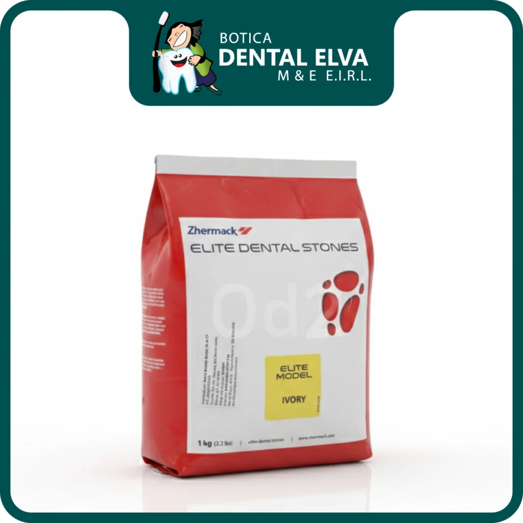 Elite Dental Stone de Zhermack es un yeso natural de Clase 4 (Tipo IV), formulado específicamente para la confección de modelos maestros y troqueles donde la precisión dimensional es crítica. Este material destaca por sus propiedades tixotrópicas: fluye con extrema facilidad bajo vibración para rellenar los detalles más finos de la impresión, pero se mantiene estable y no gotea una vez que cesa la vibración, facilitando el vaciado sin burbujas.