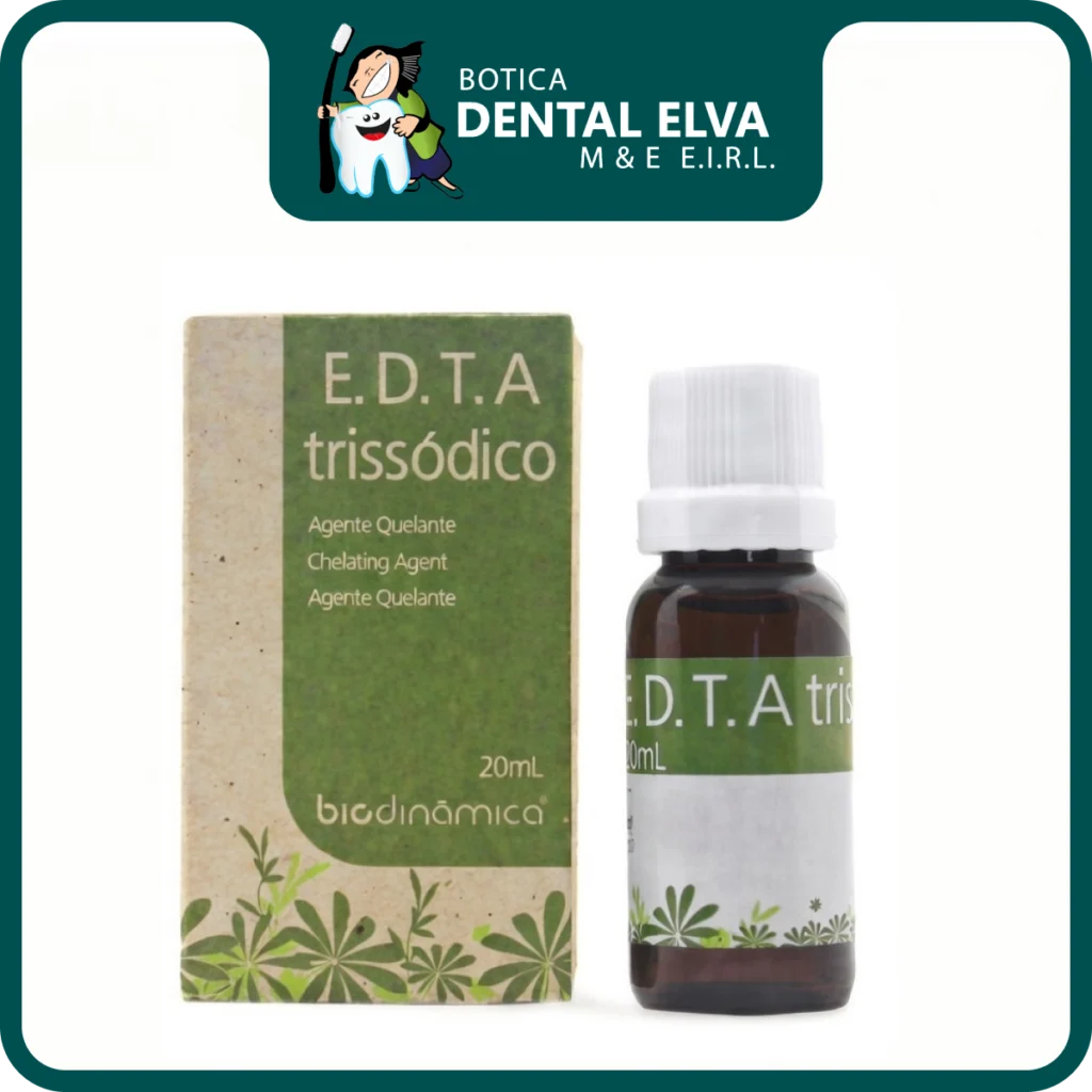 El E.D.T.A. Trisódico de la marca Biodinámica es un potente agente quelante líquido indispensable para los tratamientos de endodoncia más exigentes. Su principal función clínica es reaccionar químicamente con los iones de calcio presentes en la dentina, promoviendo una descalcificación controlada que facilita la ampliación y el modelado de los conductos radiculares. Esta solución líquida es particularmente útil y altamente eficiente para remover cálculos pulpares o nódulos calcificados que puedan obstruir la luz del conducto, previniendo así complicaciones durante la instrumentación.