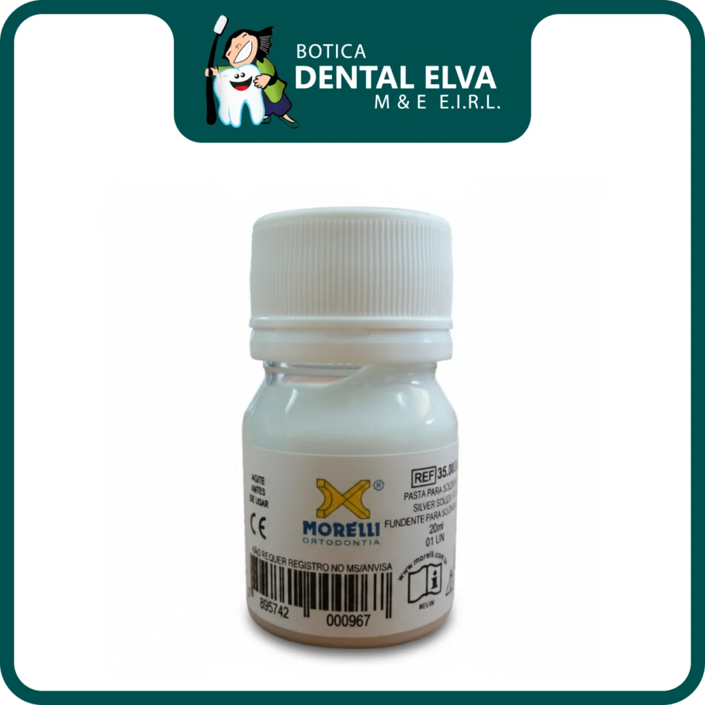 El Fundente Morelli (Flux) es una pasta química de acción desoxidante diseñada específicamente para potenciar la soldadura de plata en la confección de aparatología ortodóncica. Su función principal es romper la tensión superficial y disolver los óxidos metálicos (como el óxido de cromo en el acero inoxidable) que se forman al calentar los metales, permitiendo que la soldadura de plata fluya libremente y «moje» la superficie de manera uniforme.