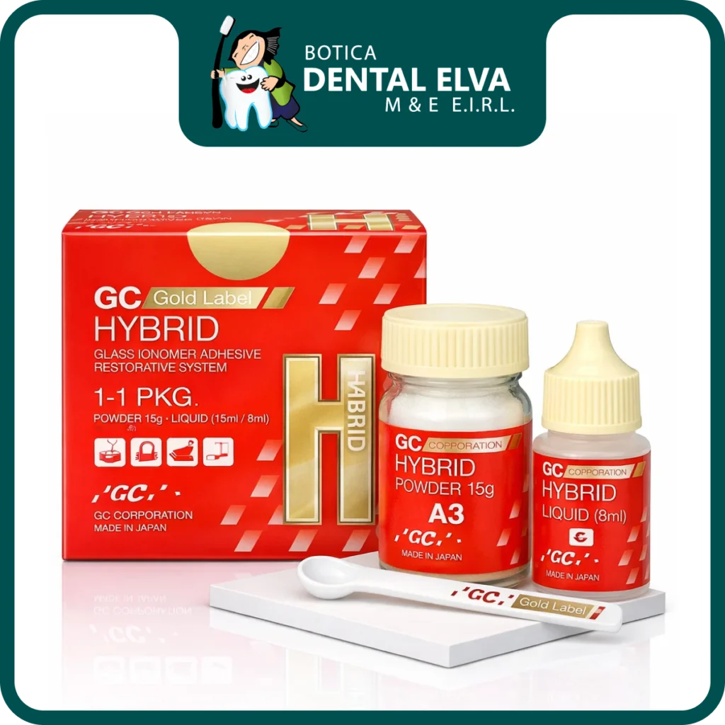 GC Gold Label Hybrid es un material restaurador autoadhesivo de mezcla manual basado en tecnología de vidrio híbrido, indicado para restauraciones y usos clínicos seleccionados donde se busca buena tolerancia a la humedad, liberación de flúor y desempeño mecánico mejorado dentro de las indicaciones del fabricante.