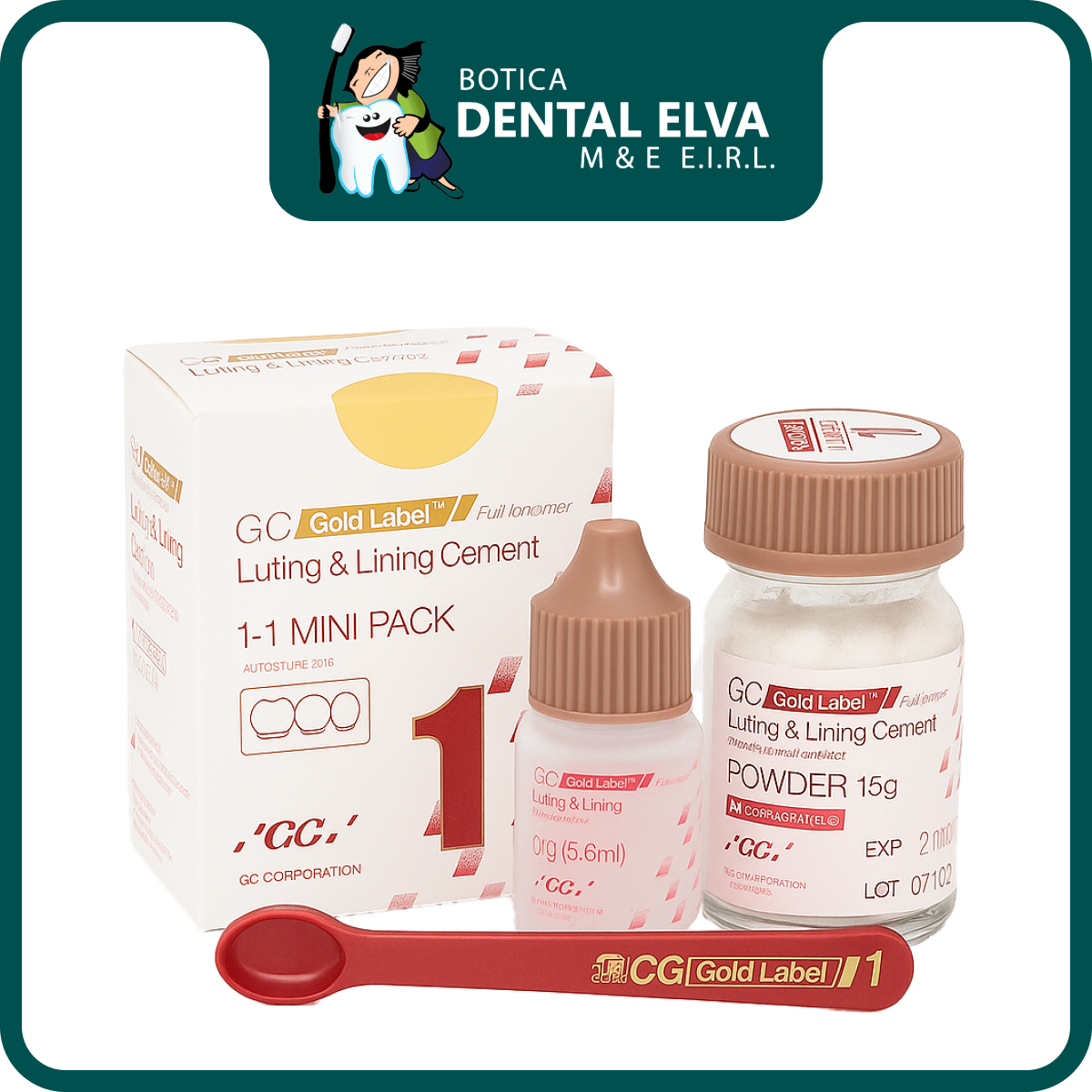 El GC Gold Label 1 Luting & Lining Cement es un cemento ionómero de vidrio desarrollado por GC Corporation Japón para ofrecer una adhesión confiable y duradera en procedimientos de cementación y recubrimiento cavitario. Su formulación avanzada combina una excelente resistencia mecánica con liberación prolongada de flúor, lo que favorece la protección anticaries y el sellado marginal. Gracias a su consistencia cremosa, mezcla controlada y tiempo de fraguado equilibrado, permite una manipulación sencilla y precisa. Este cemento ionómero es ideal para cementar coronas metálicas, puentes, incrustaciones y como base cavitaria bajo restauraciones de resina o amalgama.