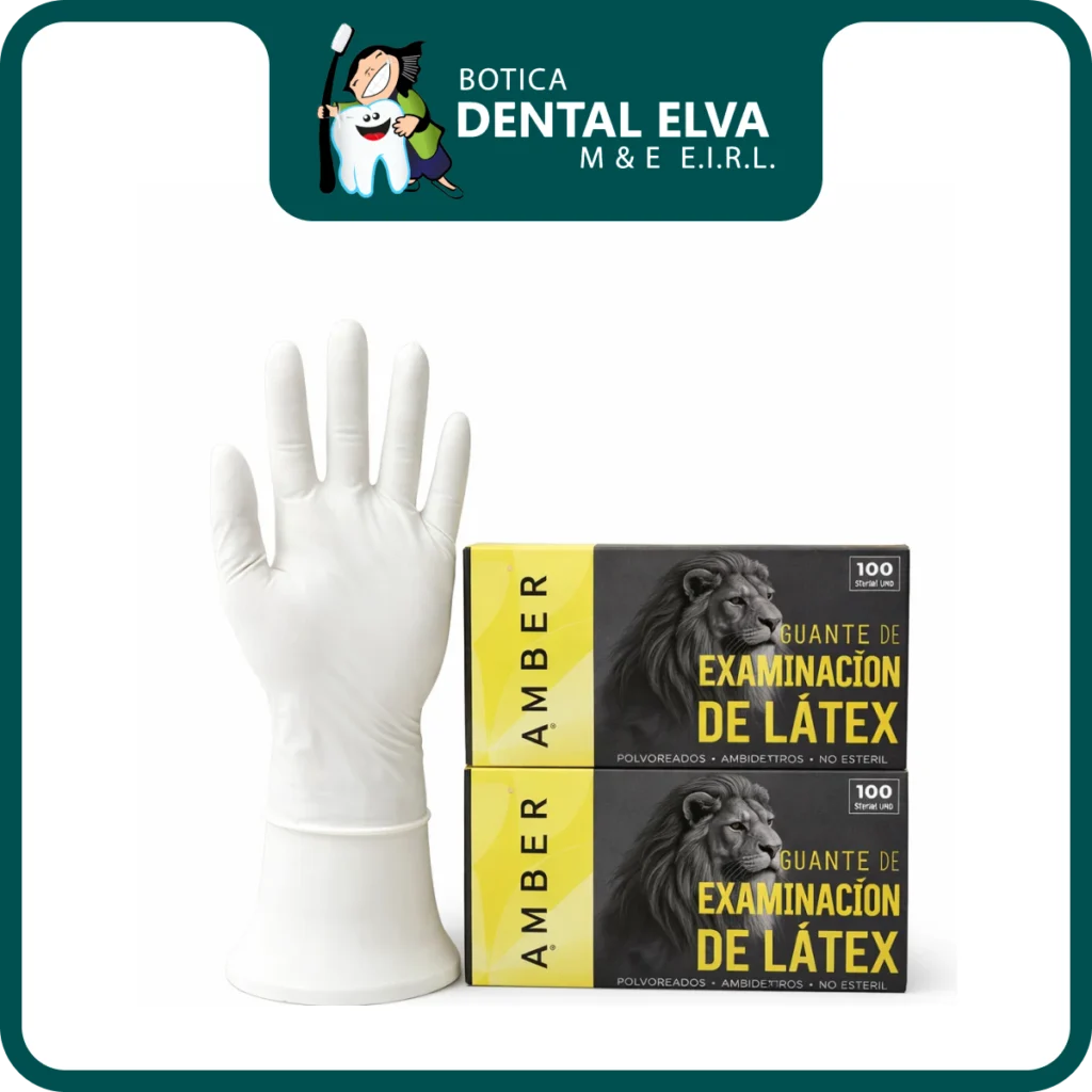 Los guantes de látex AMBER son guantes de examen desechables utilizados en odontología como barrera de contacto durante la atención clínica. El látex se caracteriza por su elasticidad y ajuste, lo que puede aportar buena sensibilidad táctil en maniobras de precisión con instrumental. Al ser sin polvo, están orientados a reducir residuos de talco en el campo de trabajo y mejorar la comodidad en el uso diario. Se indican como guantes no estériles para recambio frecuente, complementando los protocolos de bioseguridad del consultorio.