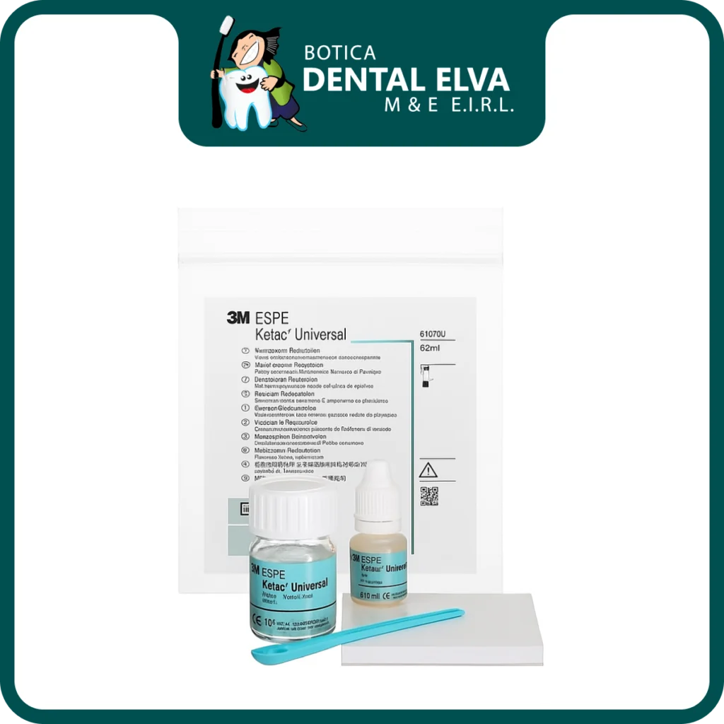 Ketac Universal 3M es un ionómero de vidrio clínico especialmente formulado para restauraciones rápidas y efectivas en procedimientos cotidianos. Su diseño autoadhesivo elimina la necesidad de aplicar acondicionador o barniz, reduciendo pasos y tiempo clínico. Posee una consistencia que permite colocarlo directamente en bloque, lo que mejora la eficiencia del tratamiento y evita la creación de capas. Su biocompatibilidad y liberación continua de flúor ofrecen protección adicional y un sellado clínicamente confiable.