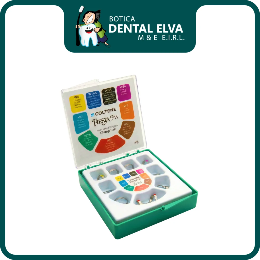 El Kit de Clamps Fiesta 9 (Sin Alas) de Coltene es una selección premium de grapas dentales diseñadas para simplificar y agilizar el aislamiento absoluto en el consultorio. A diferencia de los clamps tradicionales, la línea Fiesta presenta una codificación por colores única en cada pieza, lo que permite al odontólogo y al auxiliar identificar instantáneamente el clamp adecuado para cada diente y aplicación, reduciendo significativamente el tiempo de sillón y eliminando confusiones durante el procedimiento.