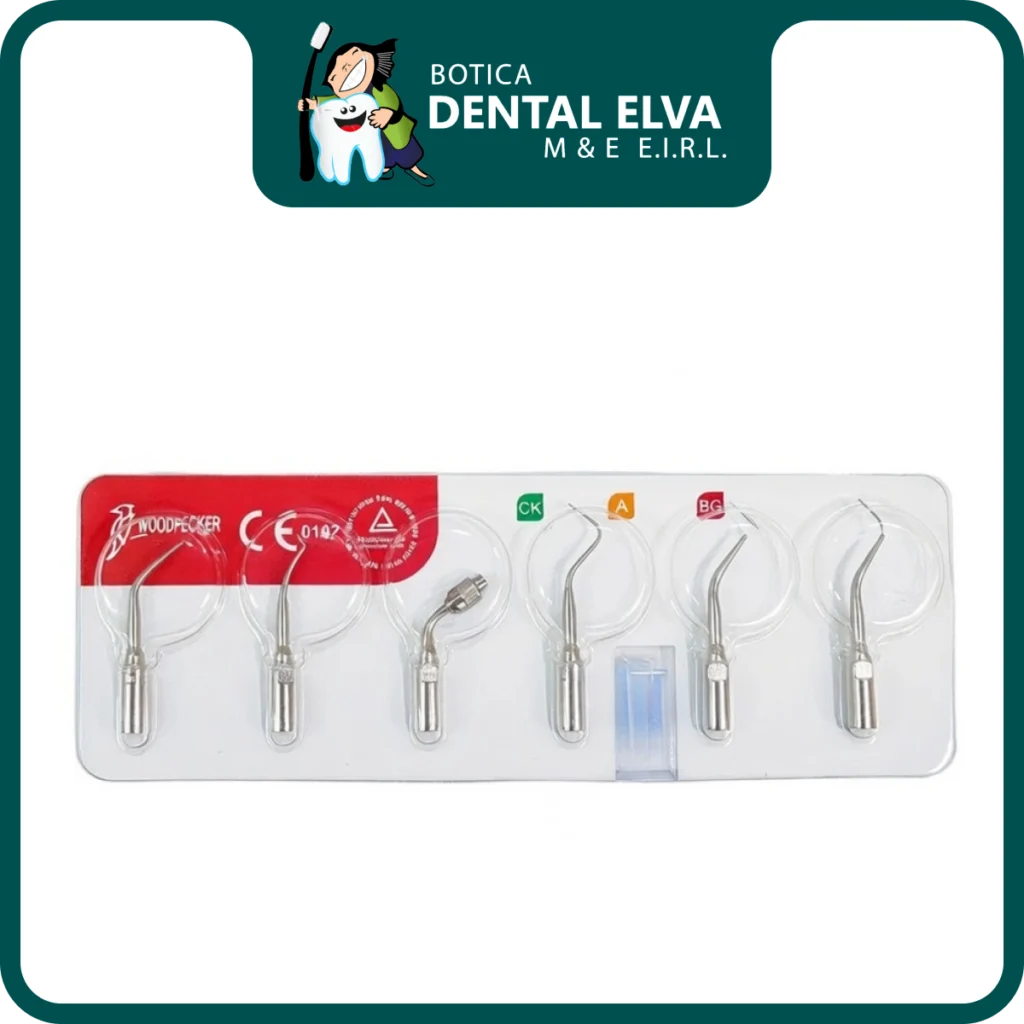 Este kit está diseñado para ser compatible con los equipos Woodpecker serie UDS y la mayoría de scalers con rosca tipo EMS. La variedad de formas incluidas permite al odontólogo abordar desde la eliminación de cálculo grueso supragingival hasta la limpieza delicada de bolsas periodontales y el acceso a conductos radiculares, todo con un solo paquete económico y versátil.