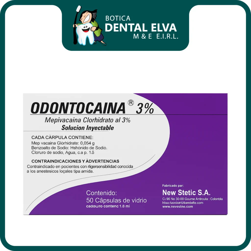 La Odontocaina 3% New Stetic es un anestésico local de tipo amida formulado con mepivacaína clorhidrato al 3%, indicado para la infiltración en tratamientos odontológicos que requieren anestesia eficaz sin el uso de vasoconstrictores. Es una alternativa recomendada para pacientes con hipersensibilidad a epinefrina o con condiciones que contraindican su uso.