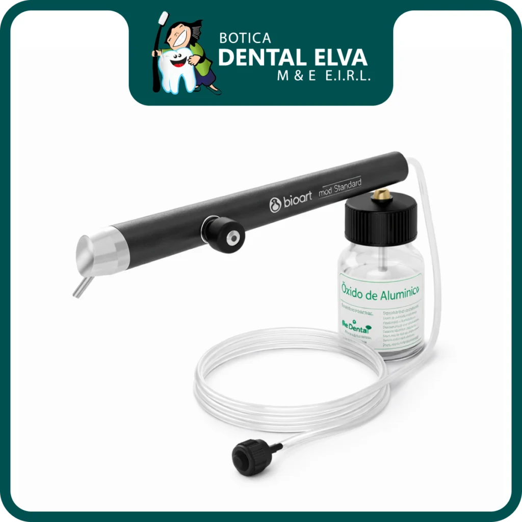 El Microarenador Bioart Microjato es una microarenadora diseñada para realizar microarenado controlado en procedimientos odontológicos, indicada para trabajar sobre metales, porcelanas y resinas. Cuenta con punta fija en ángulo de 138° y punta de carburo para mayor durabilidad y precisión, utilizándose con óxido de aluminio de hasta 100 micrones según el protocolo clínico.
