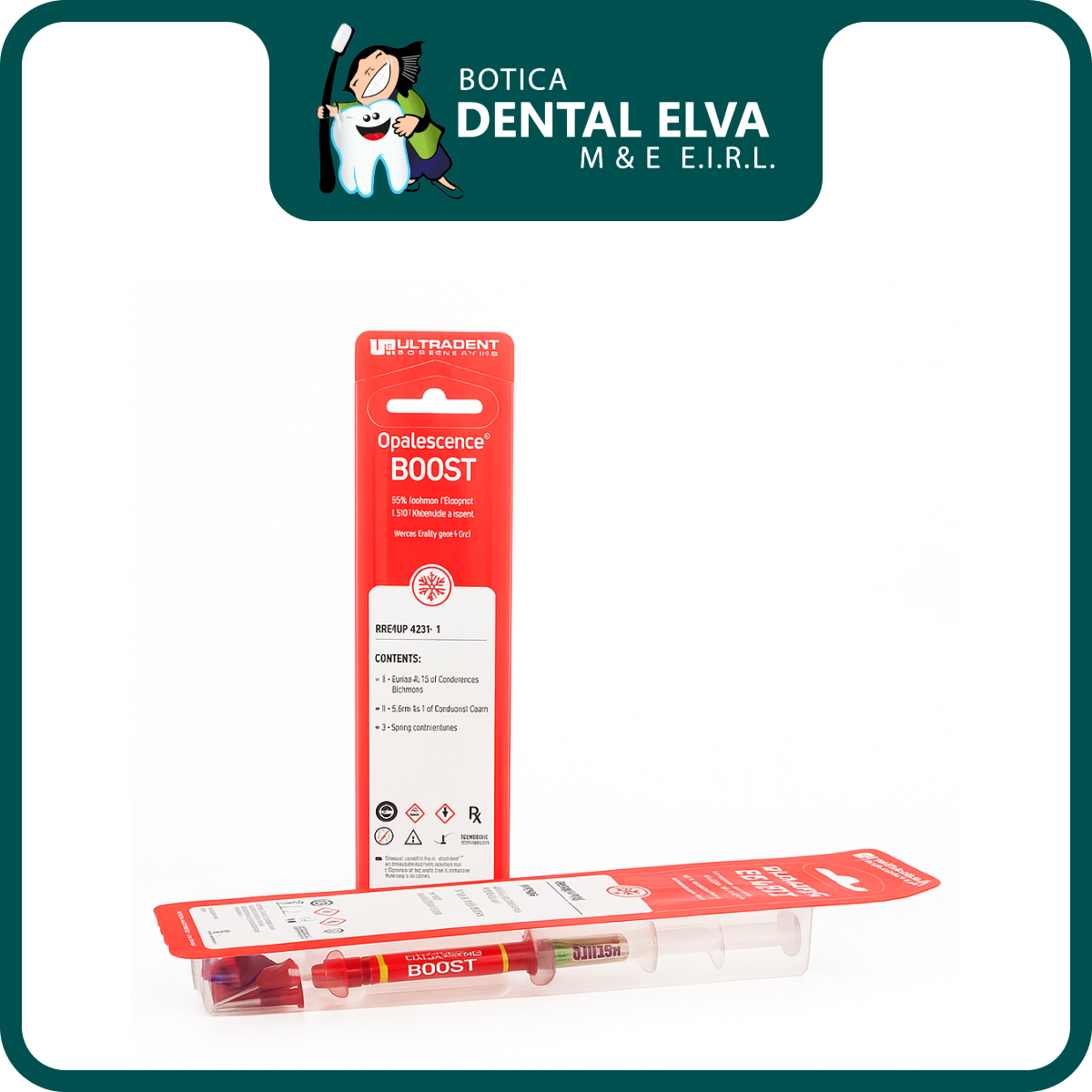 Opalescence Boost 40% Ultradent es un blanqueador dental de uso exclusivo en consultorios, especialmente desarrollado para aclarar dientes pigmentados con una fórmula potente y estable. Su presentación en jeringas preactivadas facilita la aplicación directa, evitando mezclas complejas y ofreciendo un control clínico preciso.