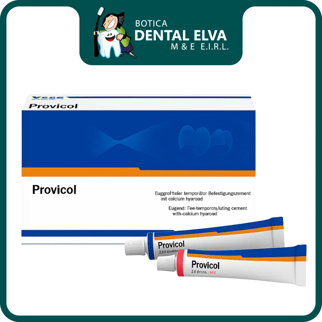 Provicol Voco es un cemento provisional de alta calidad indicado para fijaciones temporales en restauraciones indirectas. Gracias a su fórmula libre de eugenol, no interfiere con los sistemas adhesivos ni afecta la polimerización de resinas, garantizando seguridad en tratamientos posteriores. Además, contiene hidróxido de calcio, proporcionando beneficios adicionales para la salud pulpar y el sellado temporal.