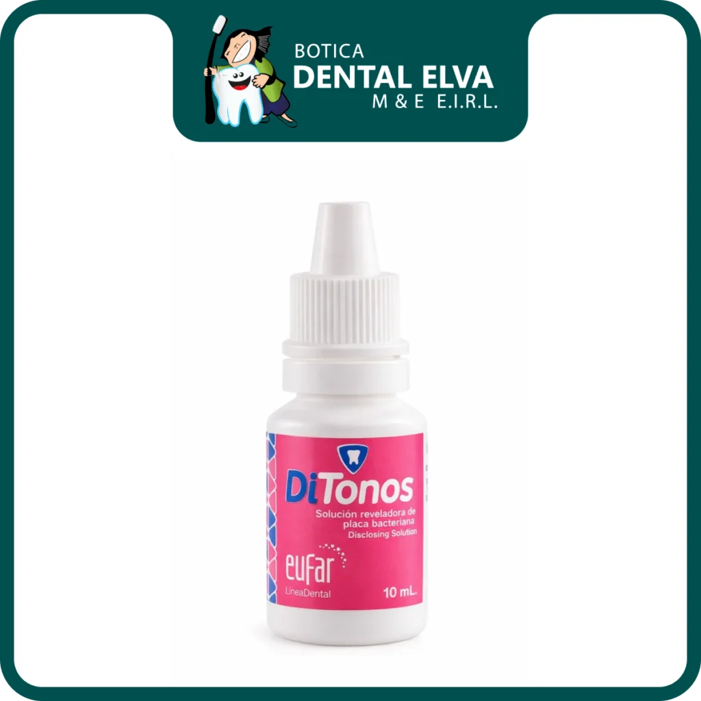 Ditonos es un revelador de placa en solución líquida diseñado para evidenciar biofilm dental con lectura bicolor, diferenciando placa antigua (azul) y placa nueva (rosada). Esta diferenciación permite identificar áreas de higiene deficiente y zonas de mayor retención, facilitando la orientación clínica y el refuerzo de técnicas de cepillado e higiene interproximal.