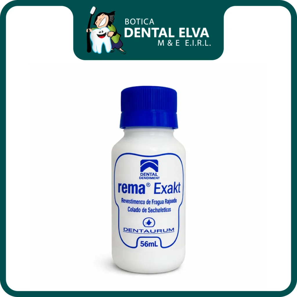 Rema Exakt Revestimiento de Fraguado 56 ml es el componente líquido diseñado para mezclarse con el polvo del revestimiento del mismo sistema, utilizado en procedimientos de fundición en laboratorio dental. Su función principal es regular la expansión del revestimiento, influyendo directamente en la precisión dimensional del molde.