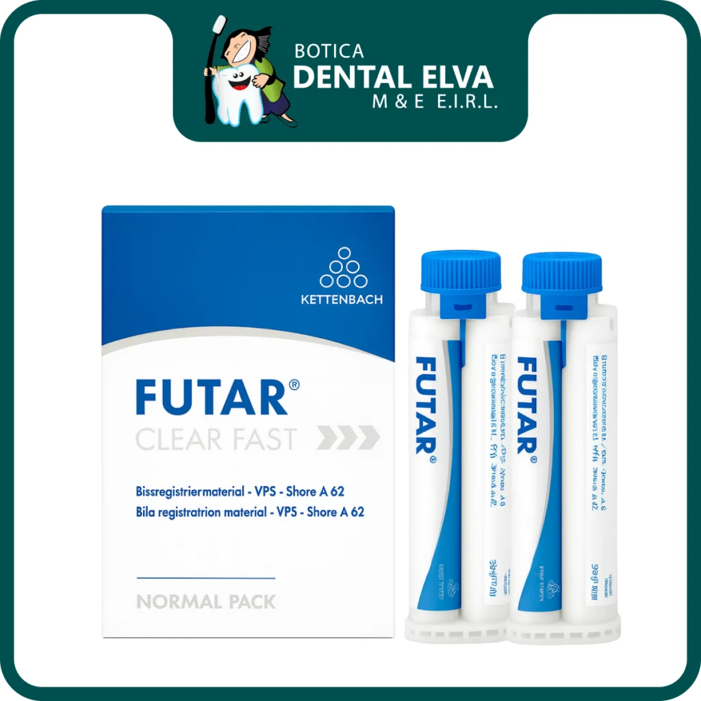 Futar Clear Fast es un material de registro diseñado para obtener mordidas exactas en tiempos muy reducidos. Su formulación transparente permite visualizar la adaptación del material durante la toma, ofreciendo seguridad adicional al profesional. Su consistencia firme pero flexible facilita la colocación y garantiza que el registro conserve su forma al retirarlo. La dureza final proporciona estabilidad suficiente para el laboratorio sin perder elasticidad durante la extracción.