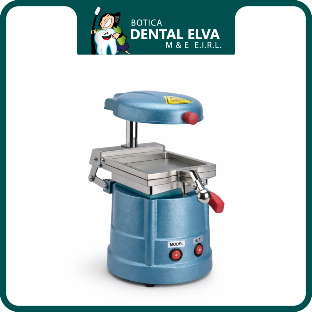 Vacuum Dental es una máquina de termoformado (vacuum former) utilizada en laboratorio para conformar láminas termoplásticas sobre modelos dentales. Su funcionamiento se basa en el calentamiento controlado del material y la aplicación de succión hacia abajo para lograr una adaptación precisa, lo que permite fabricar férulas, placas y dispositivos termoformados de manera más eficiente.