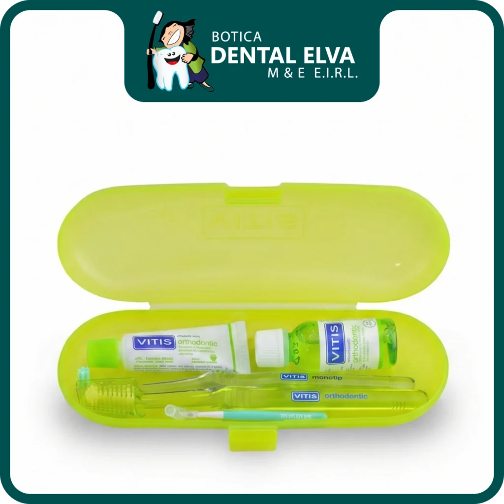 El Neceser VITIS Ortodoncia es la solución integral diseñada para pacientes portadores de aparatología ortodóntica (brackets, bandas) que necesitan mantener una higiene oral impecable en cualquier lugar. Este práctico kit de viaje reúne los elementos esenciales para realizar una limpieza profunda, eliminando eficazmente la placa bacteriana que tiende a acumularse alrededor de los aparatos, y protegiendo al mismo tiempo las encías y mucosas de las rozaduras habituales.