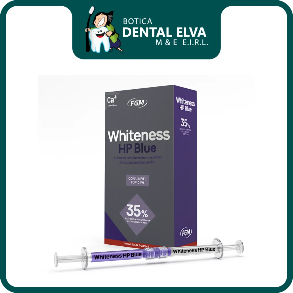 Whiteness HP Blue FGM es un sistema de blanqueamiento dental de uso exclusivo en consultorio que utiliza peróxido de hidrógeno al 35% para ofrecer resultados visibles desde la primera sesión. Su coloración azul permite una clara visualización sobre el diente, evitando contacto indebido con encías y facilitando total control al profesional. La fórmula ha sido desarrollada para ser estable, segura y altamente eficaz sin necesidad de lámparas activadoras.
