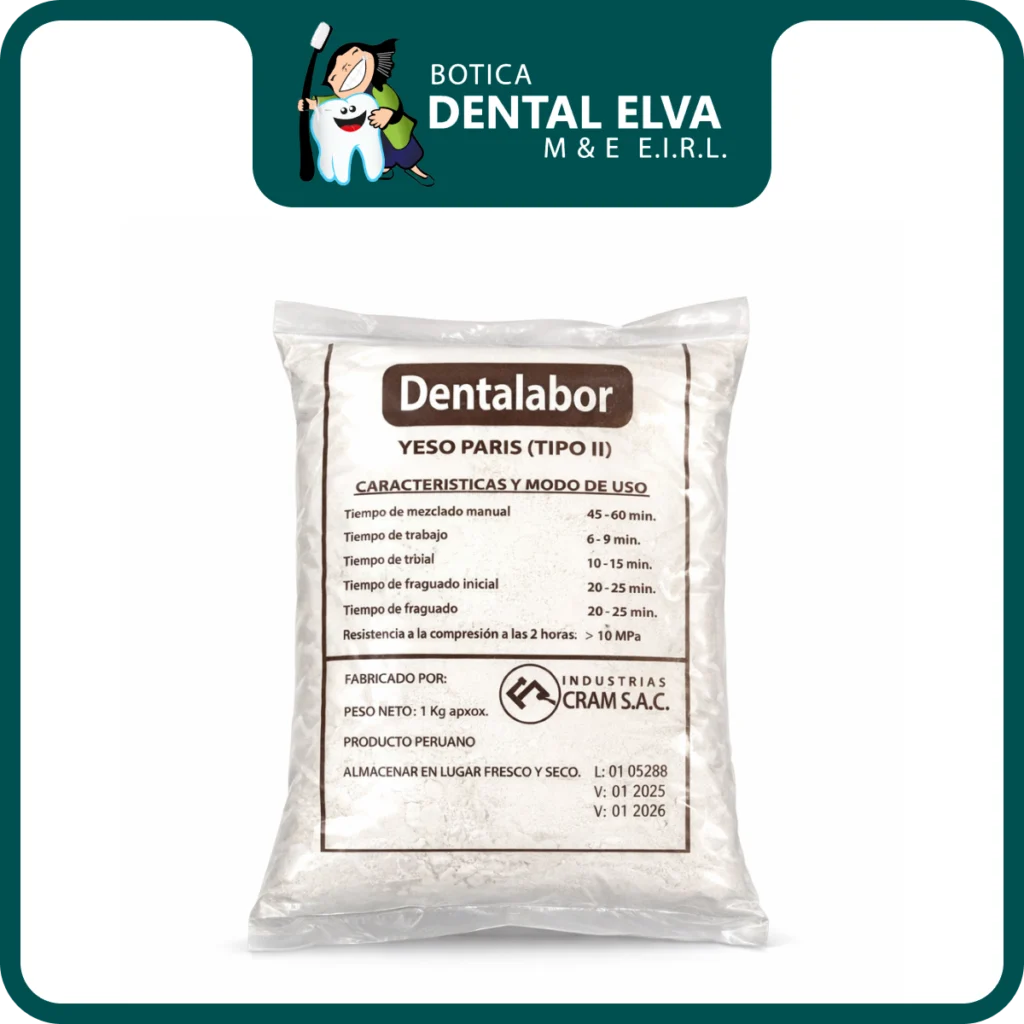 El yeso París tipo II es un material odontológico empleado principalmente en laboratorio dental para la confección de modelos de estudio, modelos diagnósticos y montajes en articulador. Su formulación permite una mezcla uniforme y una fluidez adecuada, facilitando el vaciado de impresiones sin perder estabilidad durante el fraguado.