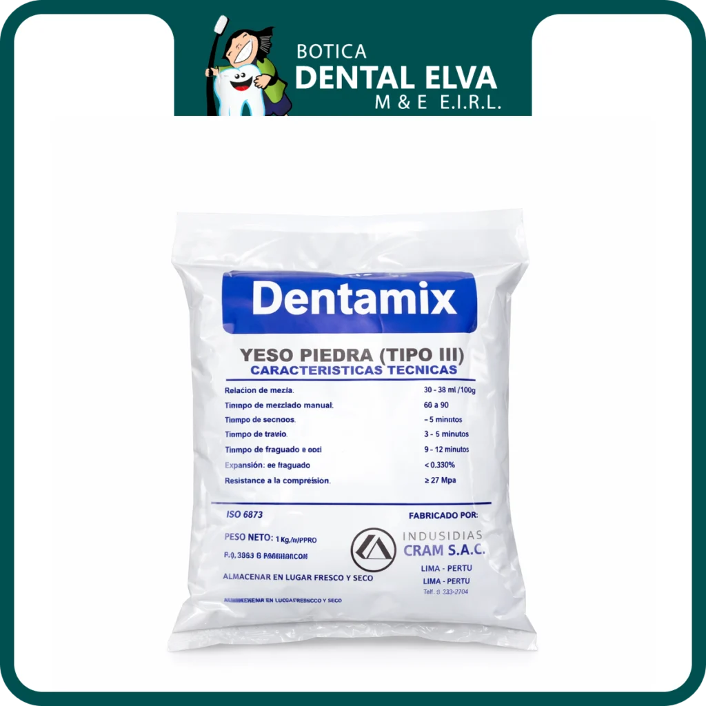 Yeso tipo III Dentamix en presentación comercial según fabricante