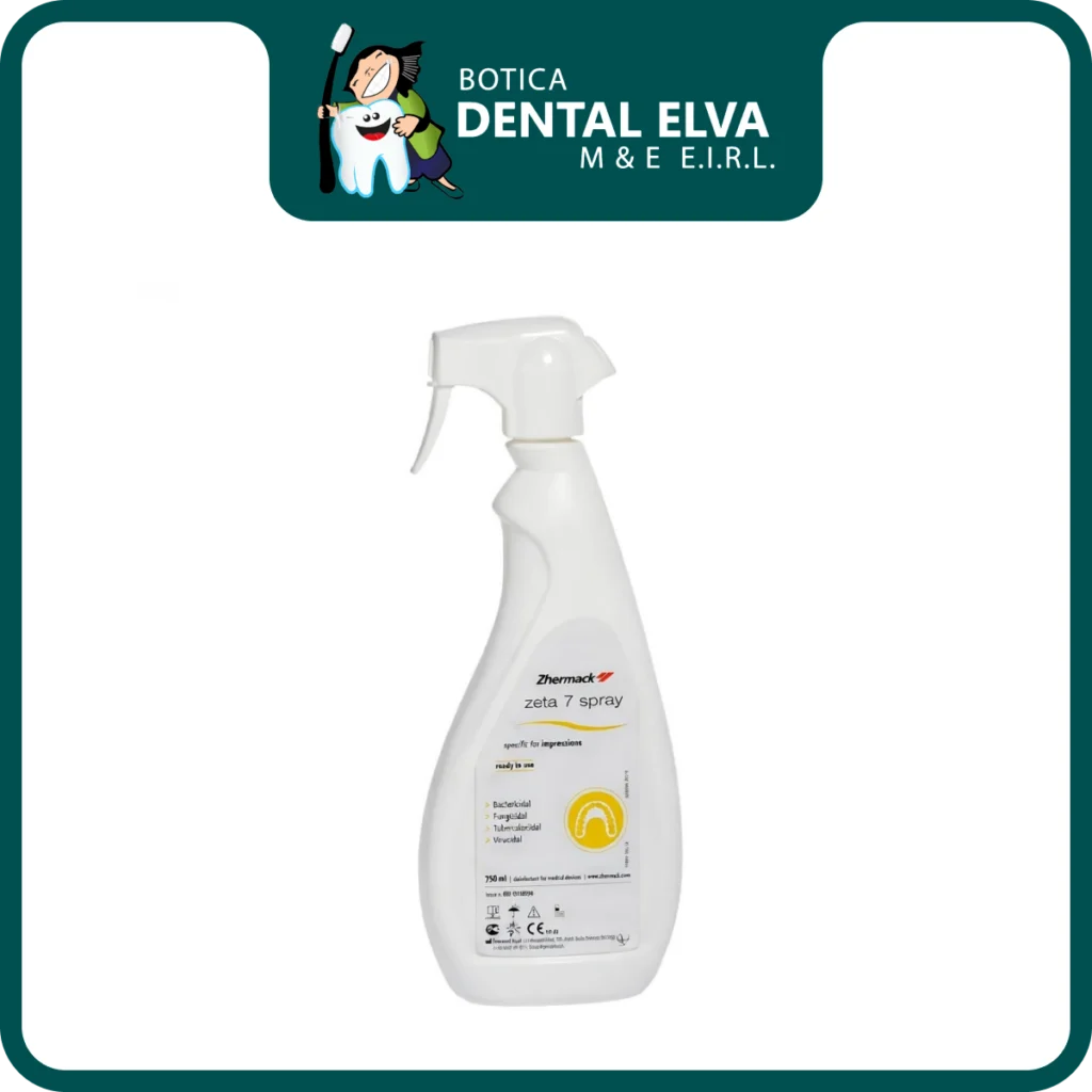 El Zeta 7 Spray de la prestigiosa marca Zhermack es una solución desinfectante lista para usar, desarrollada específicamente para garantizar la máxima bioseguridad en la transición del consultorio al laboratorio dental. Su fórmula de alto rendimiento, a base de etanol e isopropanol, proporciona una desinfección rápida y profunda de las impresiones dentales, eliminando eficazmente bacterias, hongos y virus en cuestión de minutos.